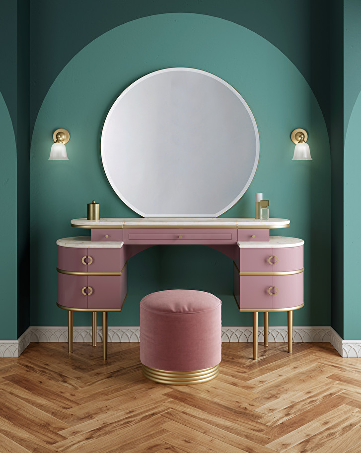 A tribute to the sophisticated femininity of the muse of F. Scott Fitzgerald, the design of this pouf revisits the refined atmosphere of the 1920s and the wonderful residences described so magnificently in “The Great Gatsby”. The distinctive, elegantly moulded base comes in brass with a choice of bespoke finishes. The comfortable seat is upholstered in velvet and is available in a choice of 30 bespoke colours.