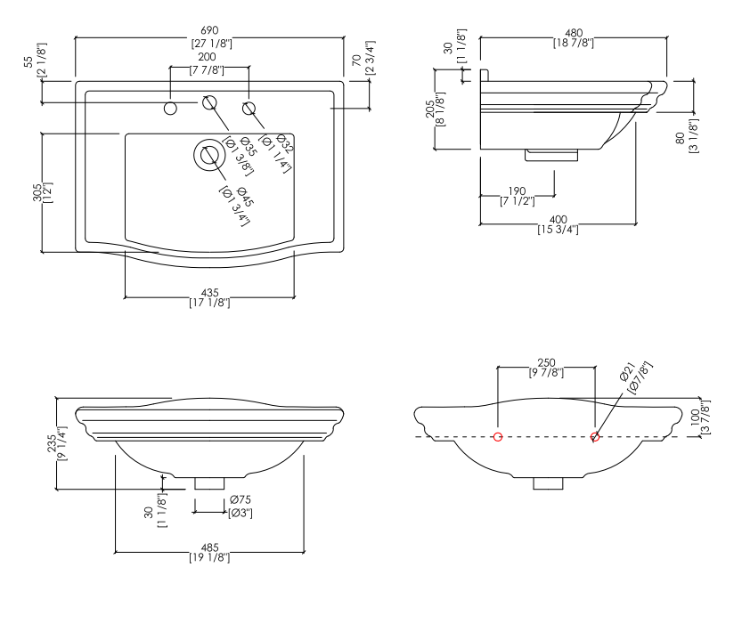 The quintessence of classicism for a washbasin with pedestal in fine white procelain, inspired by the purest British style. It is available in the versions with 1, 2 or 3 holes.