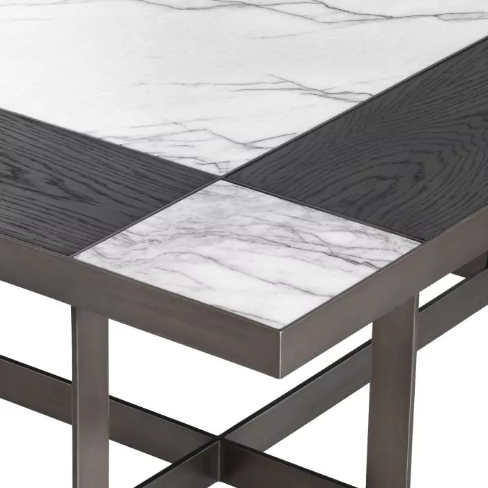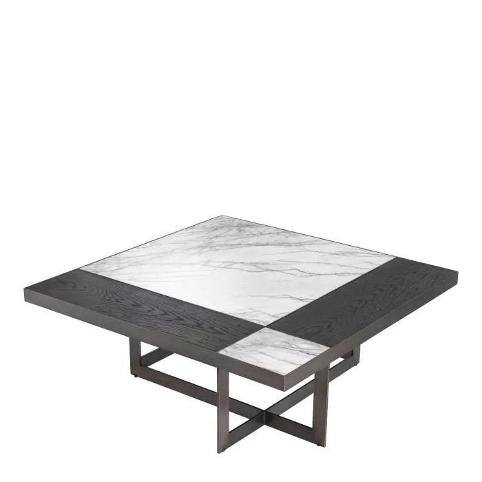 The chic Hermoza Coffee Table successfully couples the richness of Italian bianco lilac marble and the retro look and feel of mocha oak veneer.