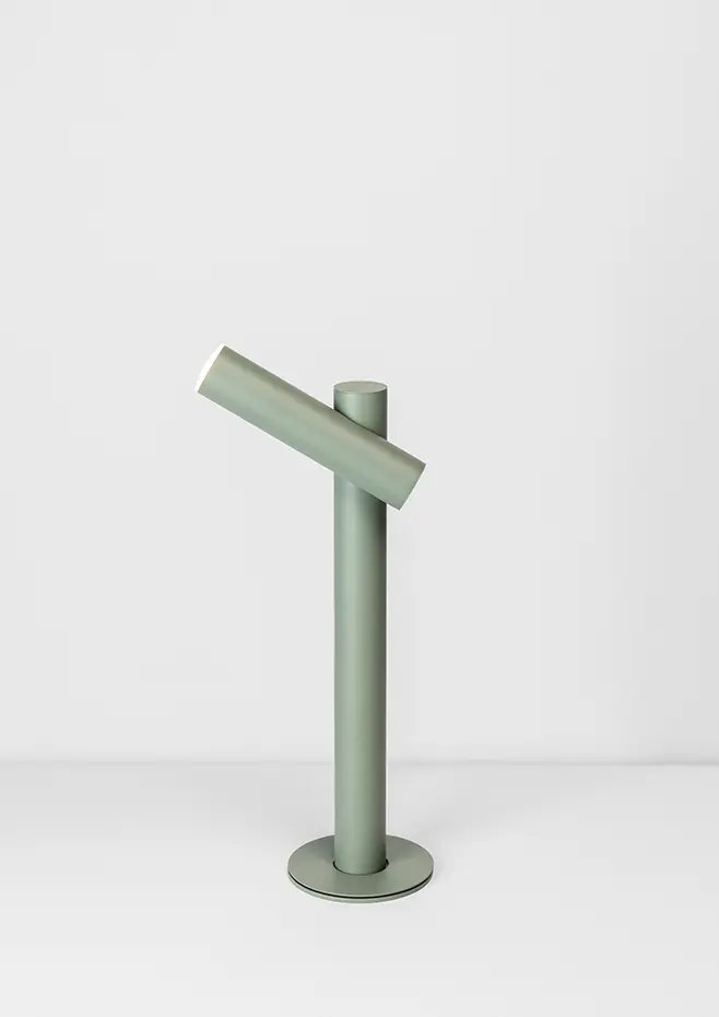 Metallic outdoor bollard light. Integral LED providing direct light.
