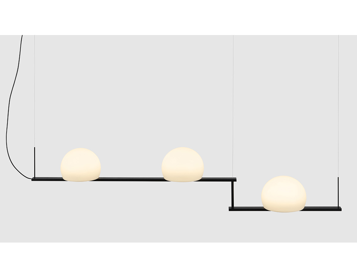 T-3716: Suspension lamp with three glass shades. It has a rotating arm that allows you to install the lamp at an angle.