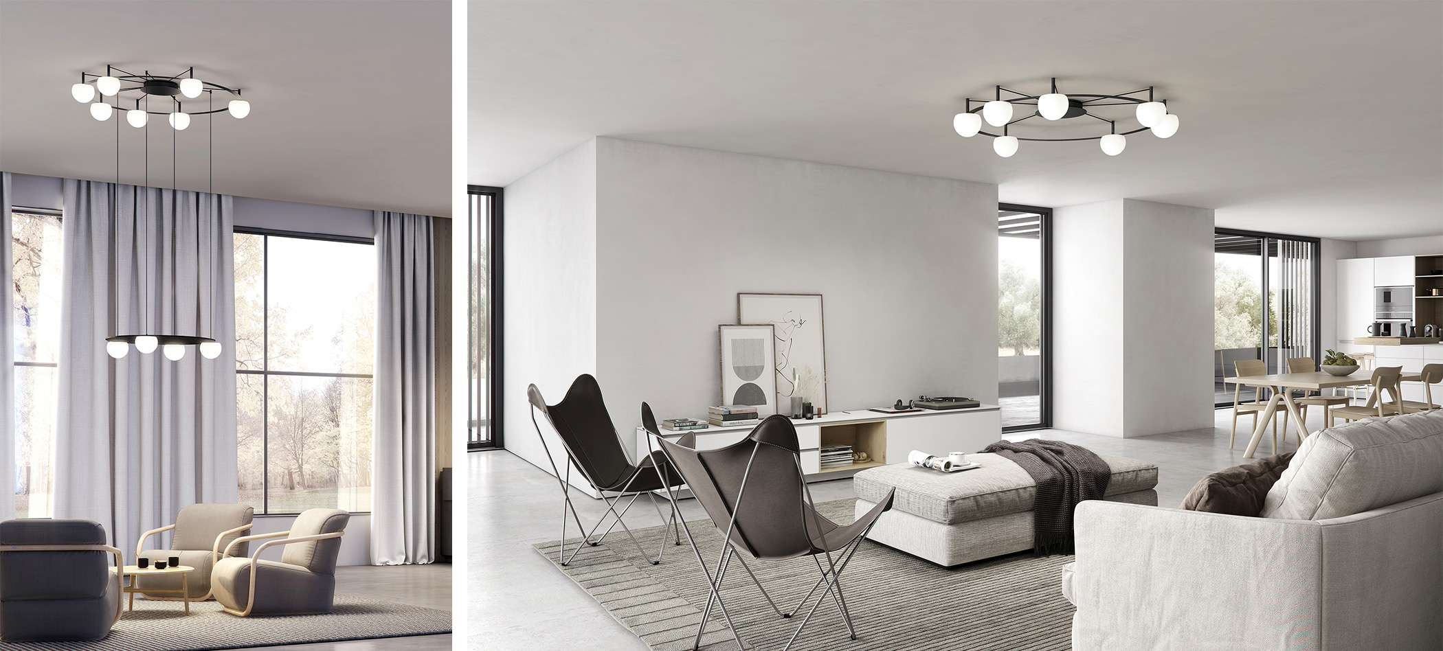 Possibility to create different compositions combining this celing lights with suspension T-3815 / T-3816 or T-3815AS / T-3816AS.