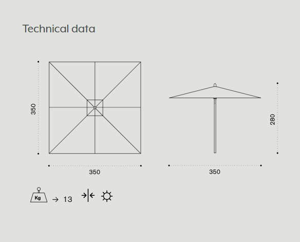 Versatility for every scenario and every need: Free is the line of parasols with solid aluminium frame available with bases of different types and with a multiple choice of colours.