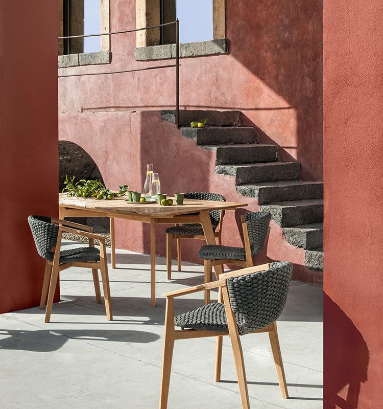 Kilt, the seat designed by Marcello Ziliani, available in versions with a teak or stainless steel structure, is able to express different looks and interpret the space that welcomes it.