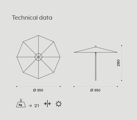Available with bases of different types and in various colours inspired by nature, the Classic parasols are suited to infinite uses and combinations.