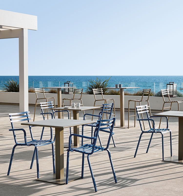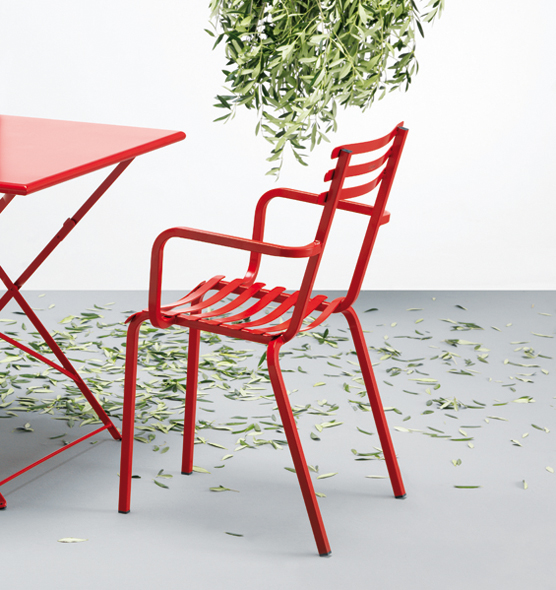 The Flower collection is a line of tables and chairs in which colored metal runs through the bright colors of nature.