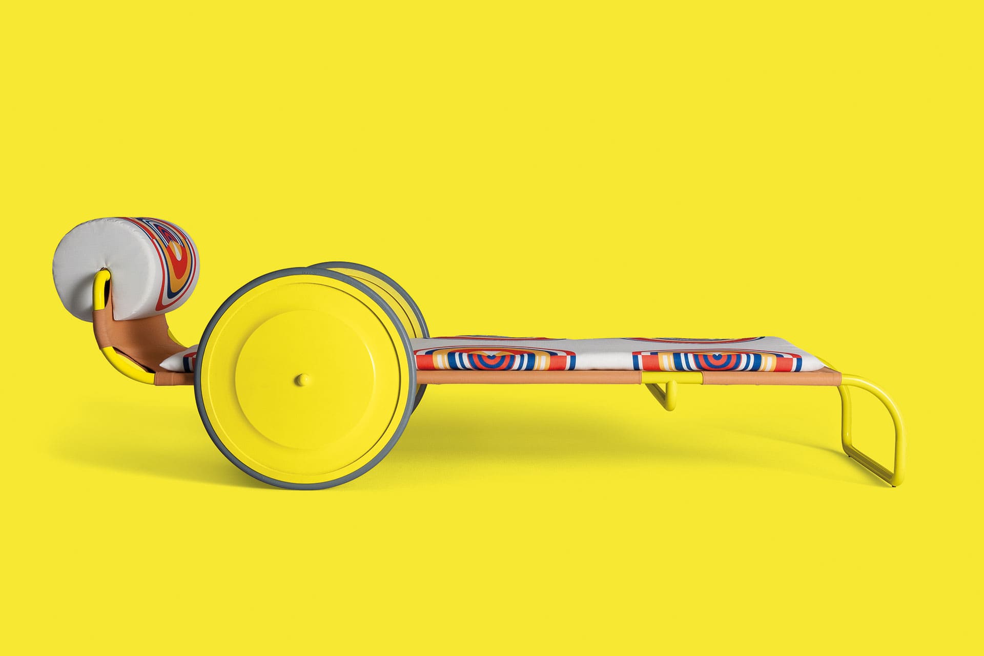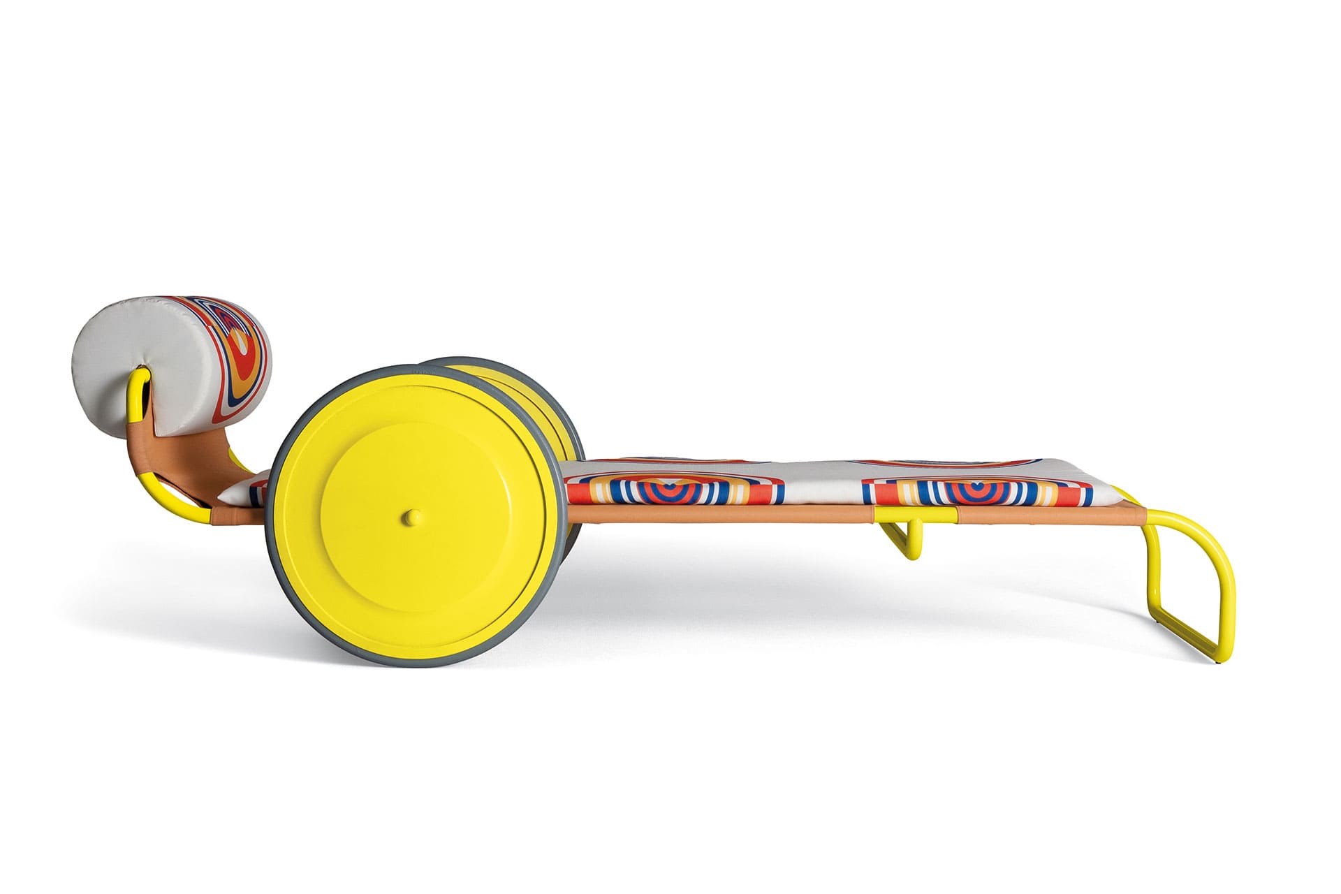 Made of steel and fabrics with original and unpublished patterns, Locus Solus is the re-edition of a collection designed by Gae Aulenti in 1964.