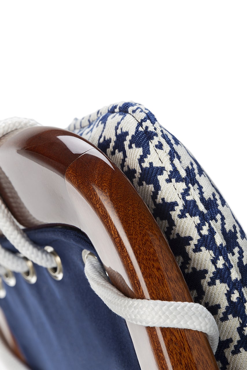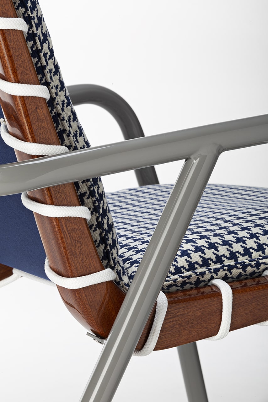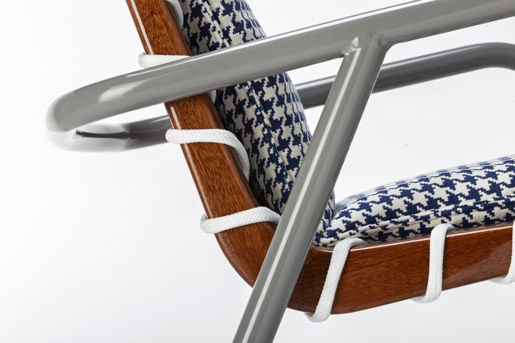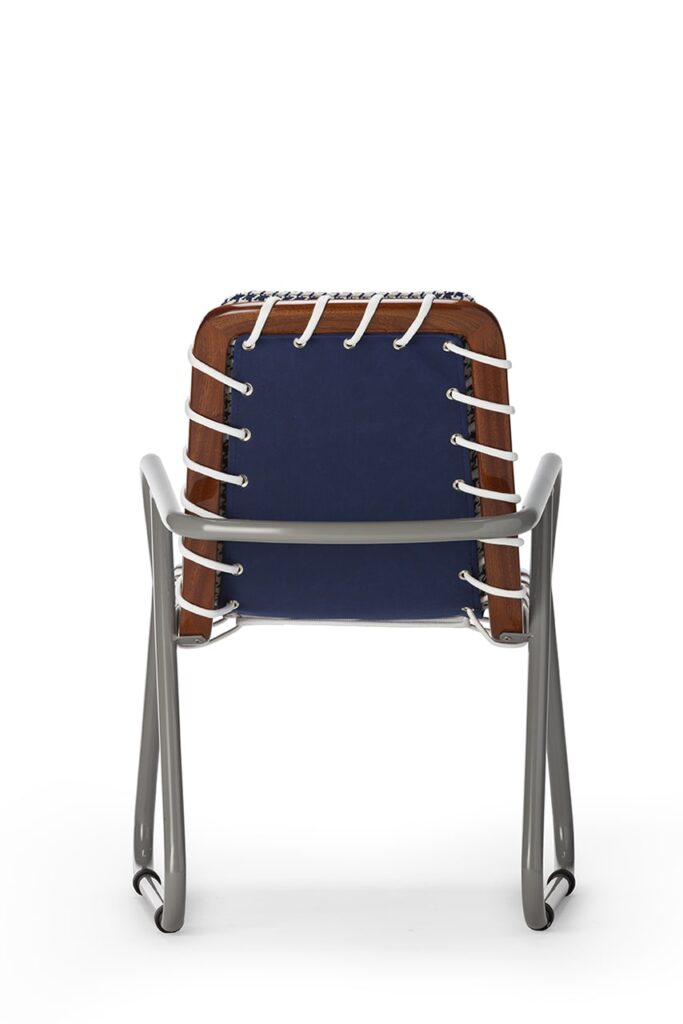 The materials mix and match in an unexpected way in the wrapping features of this chair.
