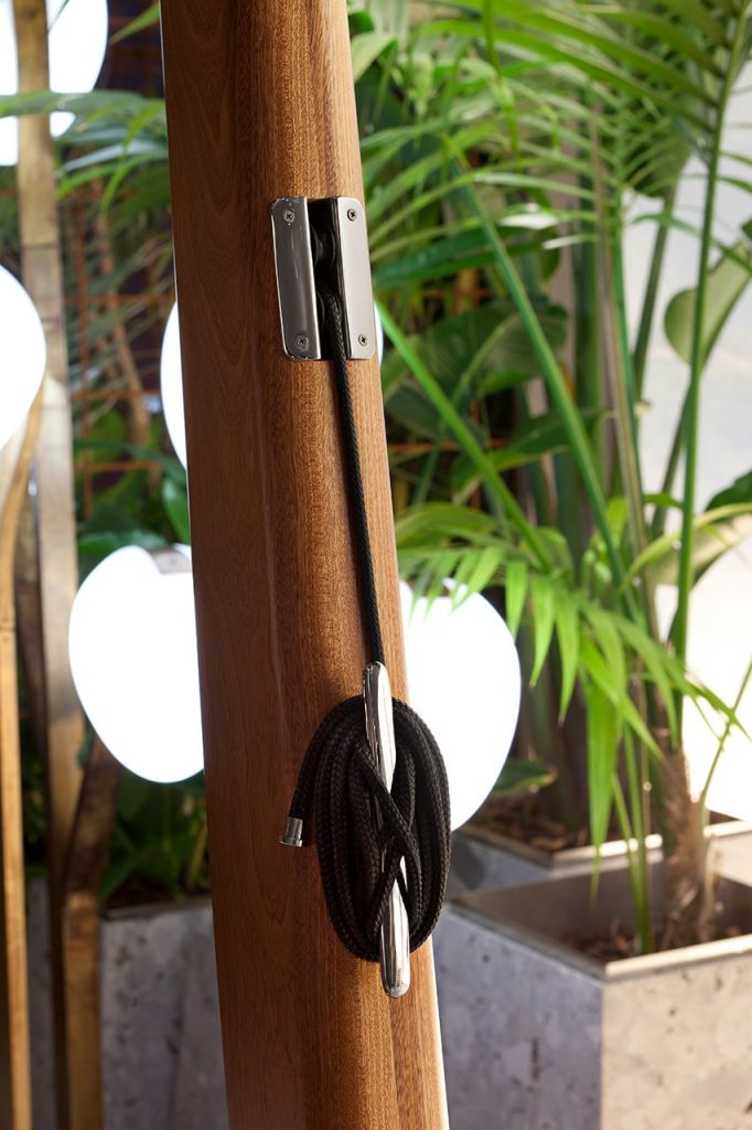 10th Butterfly is a refined micro-architecture in mahogany creating a comfortable and elegant space in the outdoor living. Recalling the nautical style, the curtains play with the structure in wood creating an irregular game of shadows going with the wind.