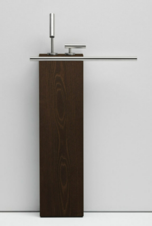 Porta salviette a parete in acciaio inox dimensioni L60 x P10,4cm. Mensola decentrata in massello di Noce o Rovere o Cristalplant Bio Active con dosatore sapone e bicchiere in acciaio inox. Disponibile in versione destra o sinistra.