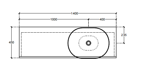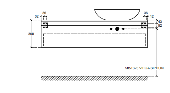 Mobile bagno porta lavabo con cassetto, top integrato e lavabo da appoggio, dimensioni da 140cm a 160cm. Piano integrato in Fenix con taglio a 45°. Lavabo in Cristalplant? Bio Active opaco modello Ciotola con copri piletta in Cristalplant? Bio Active, disponibile nelle versioni centrato, a destra e a sinistra del mobile. Basi del mobile con frontali e fianchi a 45°. I cassetti sono completamente estraibili e sono disponibili con maniglie opzionali a gola o premi apri.