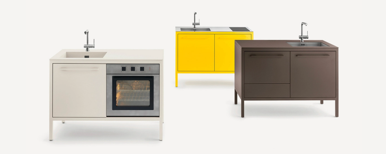 Le cucine Frame sono proposte a 2 o 3 moduli, con top in acciaio Barazza o in Fenix NTM. L’acciaio – in finitura Vintage o satinata da 4 mm – è abbinabile con tutte le finiture Fantin, mentre i top in Fenix NTM sono proposti con telai nelle finiture Ultra-matt perché esattamente corrispondenti per colore, opacità e morbidezza al tatto. è così possibile ottenere cucine monocromatiche dalle solide strutture in metallo Fantin e con top resistenti e ripristinabili.