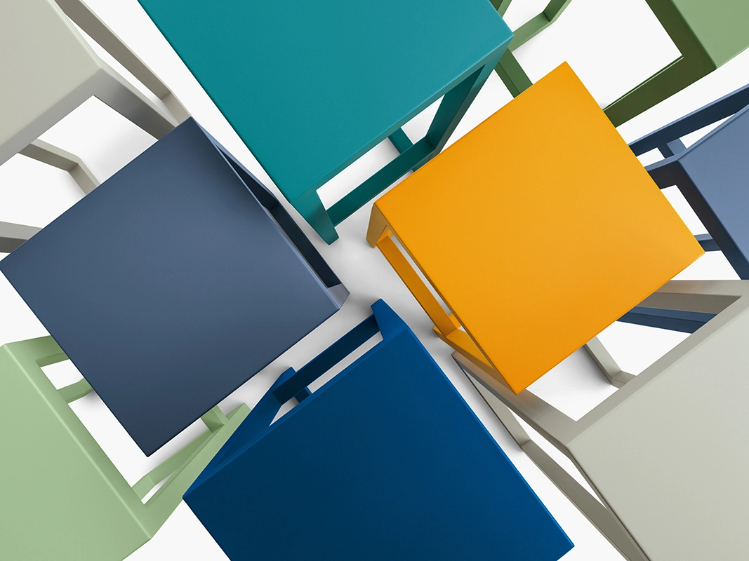 Gli sgabelli Frame hanno una forma solida e iconica. Abbinabili alle Frame Workbenches, sono disponibili in due altezze e costituiscono un complemento d’arredo trasversale grazie all’ampia palette Fantin, composta da 35 finiture, 15 delle quali adatte anche per l’outdoor: si può spaziare da una soluzione in grigio nuvola per un ambiente elegante e minimale, fino a un energico giallo melone per gli spazi più eclettici.