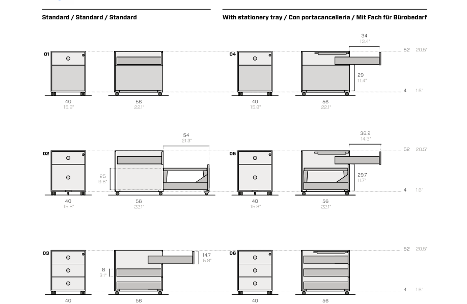 Mya è una cassettiera scorrevole e silenziosa, grazie alla qualità dei materiali e all’utilizzo delle migliori guide a sfere. Progettata per ridurre al minimo le dimensioni esterne – a parità di capacità di contenimento dei cassetti – si caratterizza per la pratica maniglia ad incasso dal diametro di 4 cm.