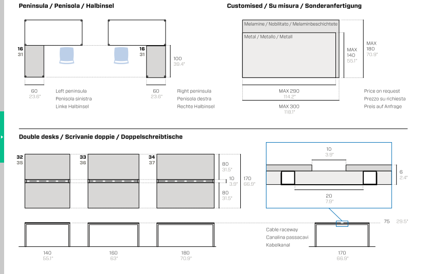 Caratterizzato da linee semplici e rigorose, è composto da una struttura in tubolare quadrato che sostiene il top.