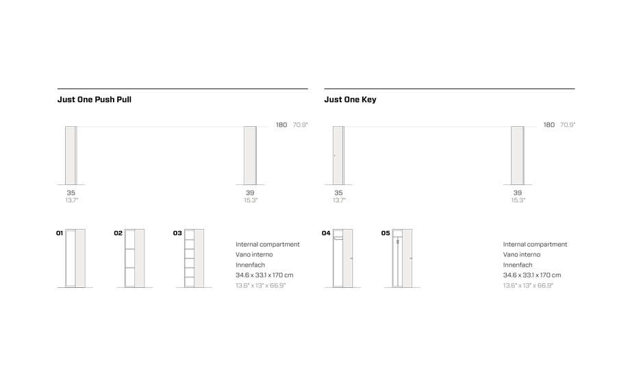 Just è l’evoluzione del classico armadietto, perché arricchito da un design contemporaneo che si esalta con ogni colore della gamma Fantin. Oltre la cura del dettaglio estetico, Just presenta diverse soluzioni pratiche, come la possibilità di avere tanti ripiani posizionabili liberamente e la possibilità di aprire le porte sia da destra che da sinistra. Solido e discreto, è adatto a tutte le esigenze sia nel pubblico che nel privato.