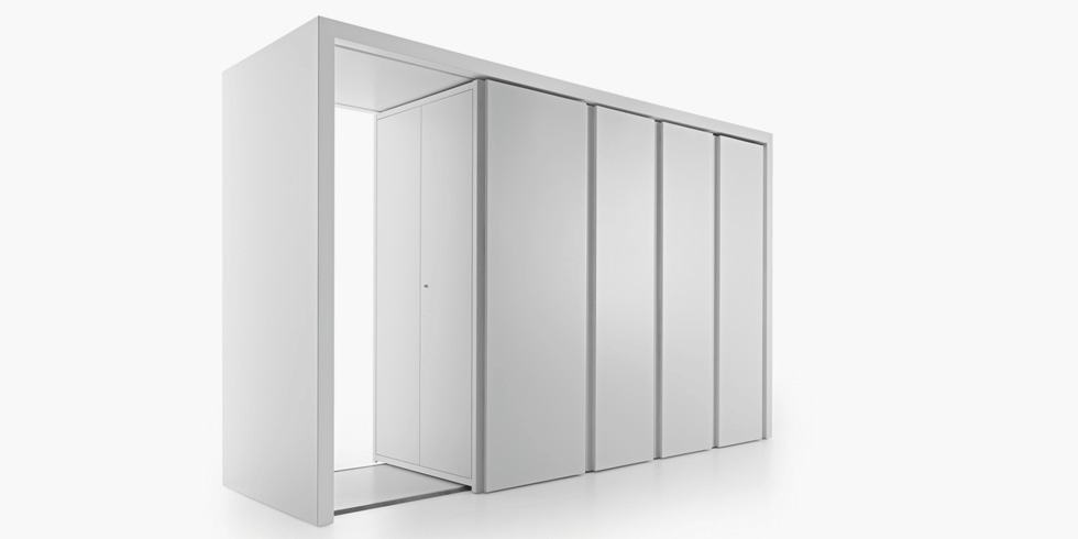 La raffinatezza delle forme e la cura dei dettagli tecnici rendono Binaria una soluzione adatta in ambienti pubblici e privati anche per nuove ed inusuali destinazioni d’uso. L’ergonomica presa maniglia dei moduli, ottenuta per sottrazione dei volumi, è la caratteristica estetica che differenzia questo sistema dalle altre collezioni presenti oggi sul mercato. Nella versione con ponte, Binaria diventa una piccola architettura da interni, protagonista al centro della scena.