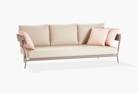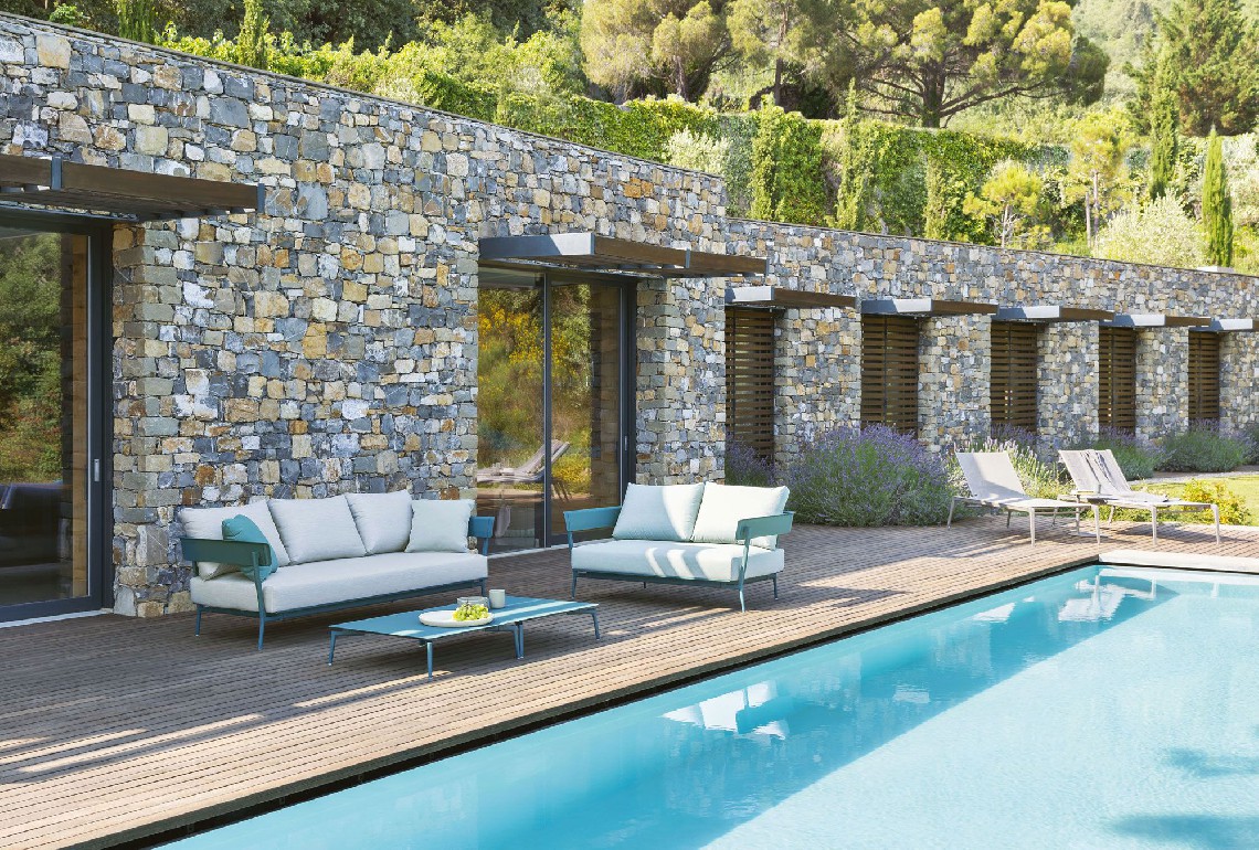 A genuine outdoor sitting room: Aikana is a system of individual and modular elements to be combined to your liking and create either roomy or cosy settings. The frame is made of die cast and extruded aluminium and the cushions are fully removable. Available also in the waterproof version, these cushions are resistant to rain, humidity and moisture, stains and dust: they do not need to be stored away indoors nor do they need to be covered.