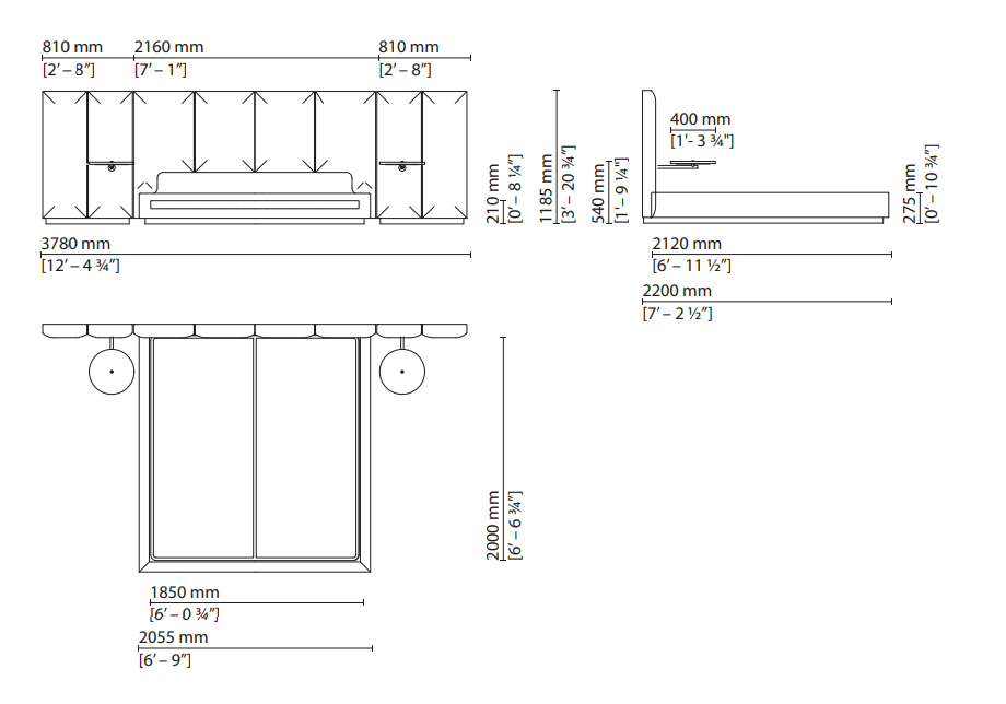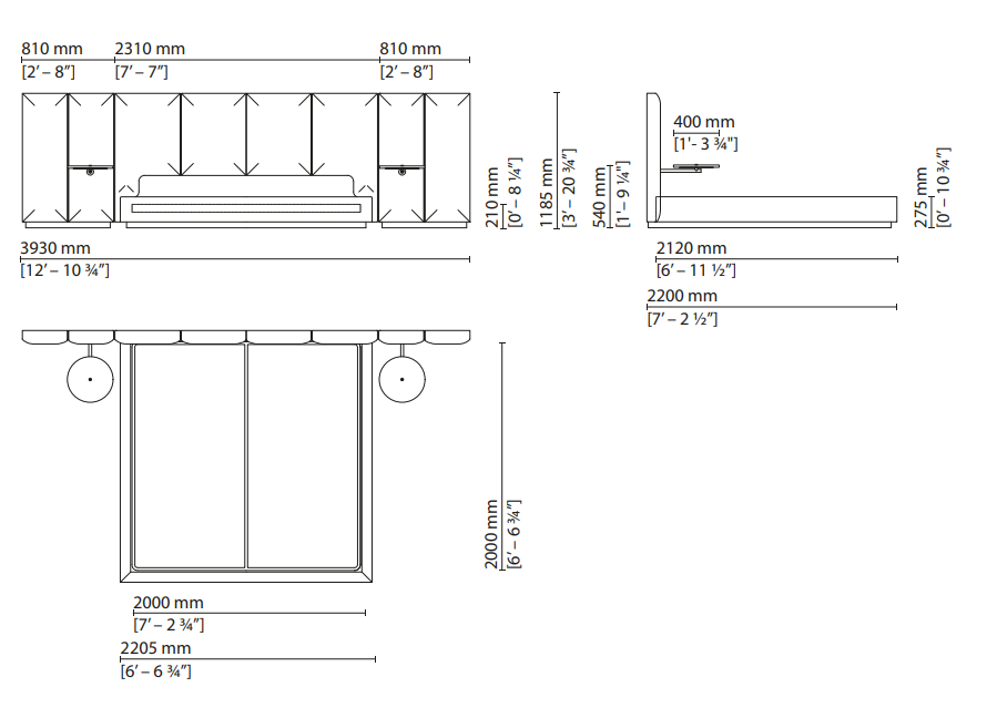 A unique highlight piece, the Delano Dressed double bed brings a new dimension to the bedroom. The spectacular oversize headboard that defines the design with its commanding volumes is updated with integrated side tables, available in either wood or bubble glass. Sleek metal tubular details, enriched with the iconic FF motif, create a visually impactful materic contrast – the result is a statement piece for private homes and luxury hospitality.