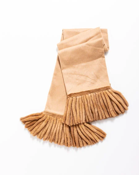 Crafted in warm, soft cashmere, the Fringes blanket is embellished with same-colour mink fringing. The perfect expression of understated luxury in its simplicity and natural colour palette, it is the perfect way to inject a touch of stylish decoration to the bedroom or living room.
