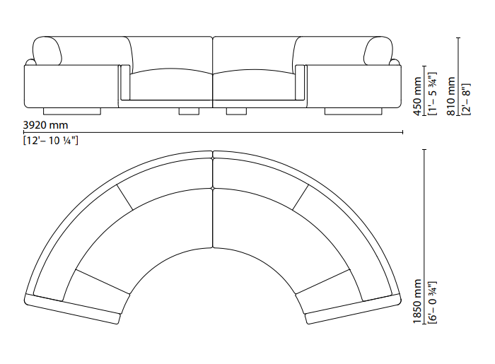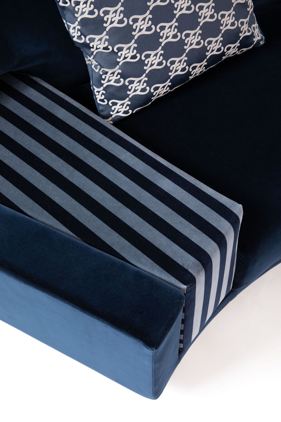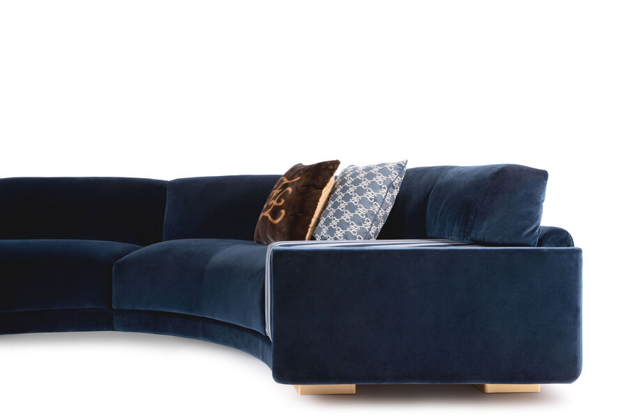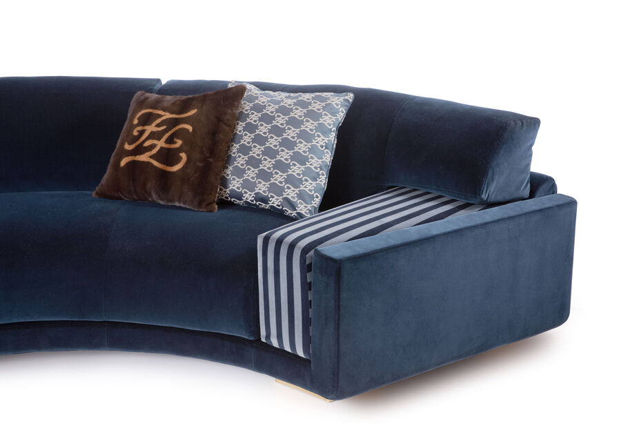 With its inviting form, the Parsifal round sofa is destined to become an irresistible magnet in your home as the place to live, socialise or simply relax. The semi-circular shape embraces the space like an amphitheatre, while the padded frame with armrests in Pequin fabric creates a striking effect. The padding is designed to deliver exceptional comfort.
