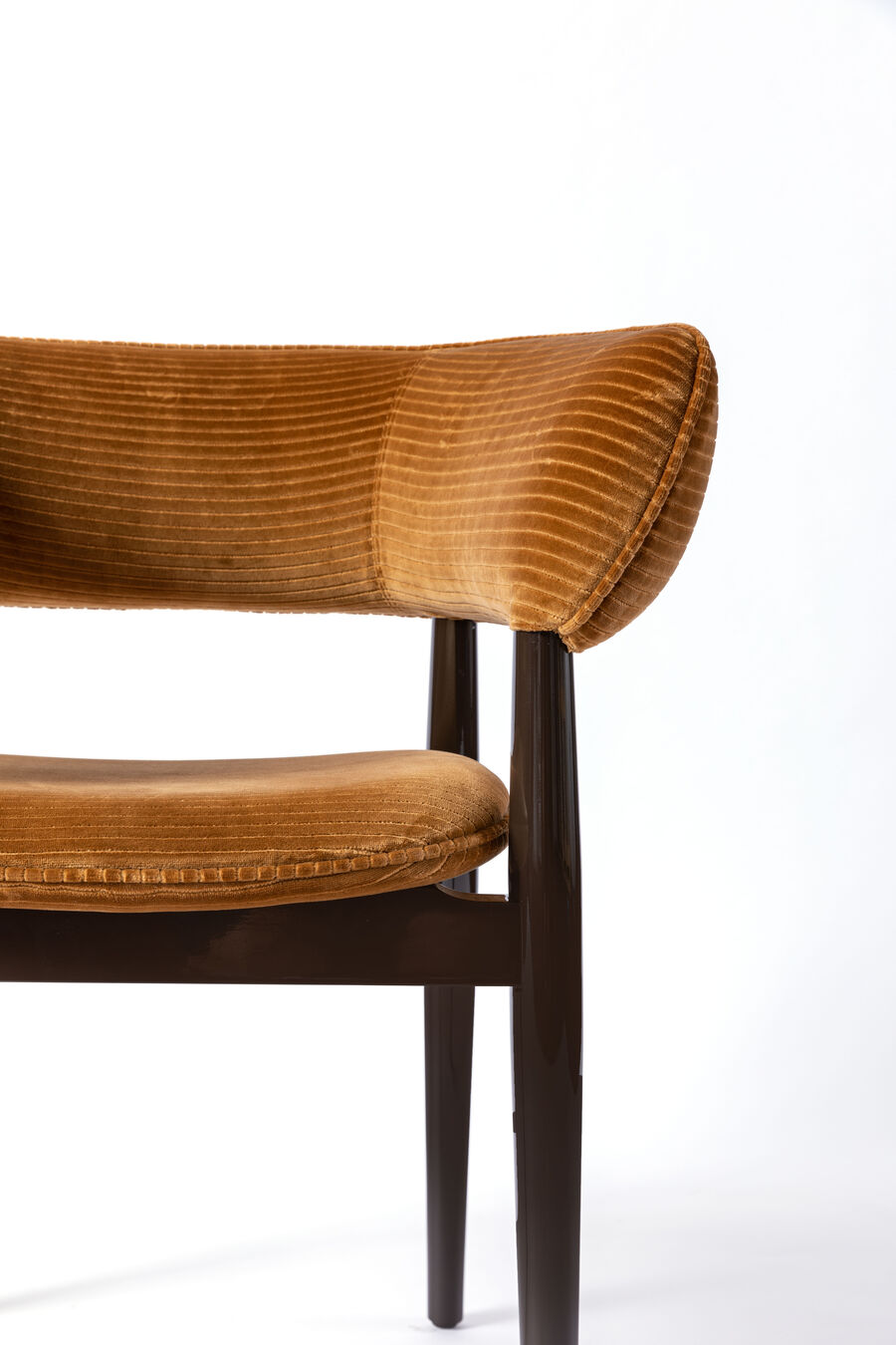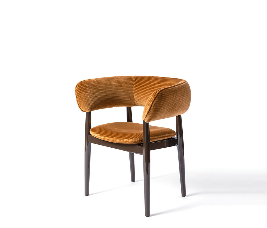The robust construction and elegant aesthetic of the Virgola chair epitomise the creative flair of designer Chiara Andreatti. The solid oak frame coordinates perfectly with the embracing form of the back and the padded seat, showcasing its softness and inviting guests to make themselves comfortable. Virgola is suitable as a dining chair or to place at your desk or worktop in a home office.