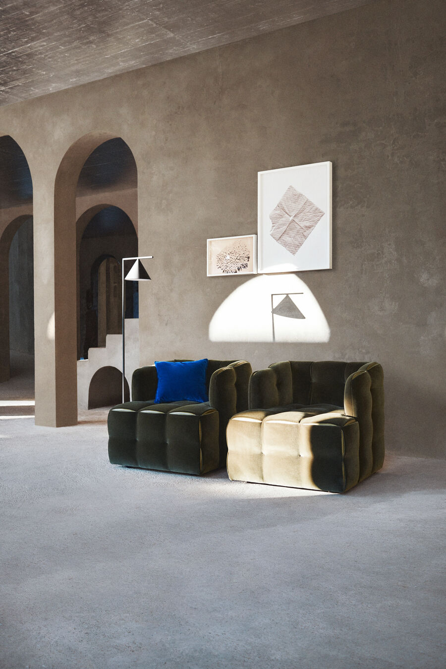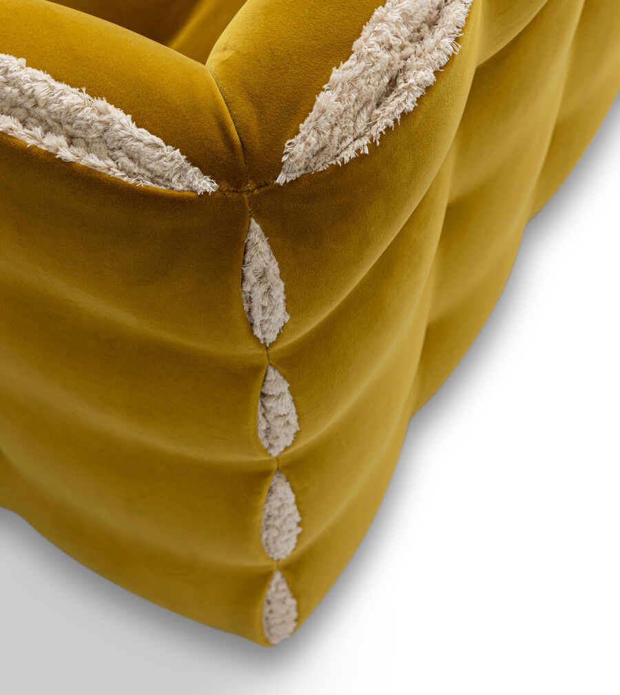 The renowned Fendi artisanal heritage is expressed to perfection in this playful series of ultra-comfortable padded armchairs and sofas inspired by the iconic Peekaboo bag. Designed by Atelier O?, each piece features fabric or leather upholstery with side slits offering glimpses of the padding for an original series of soft forms. The different pieces combine in a myriad of ways to create inviting compositions that can be arranged to suit the space and your mood.