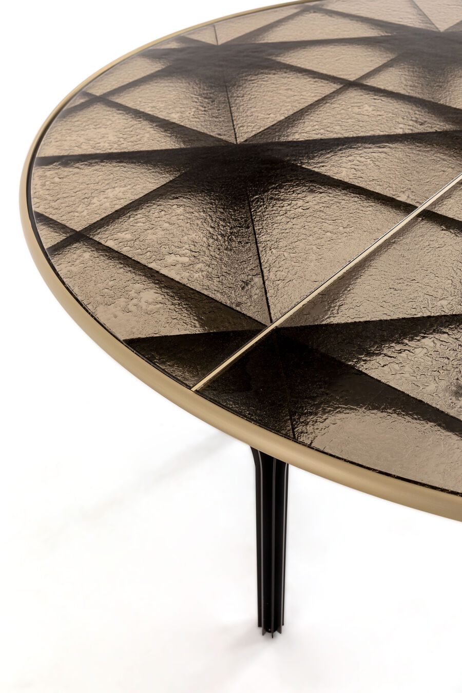 Solids and voids alternate with pleasing regularity in the steel legs of the Metropolis coffee table and console, which come in a range of colours. The visually light glass combines with finishing in different colours to create an almost sculptural effect. Atelier O? designs original pieces that bring a touch of urban chic to entranceways and living zones.
