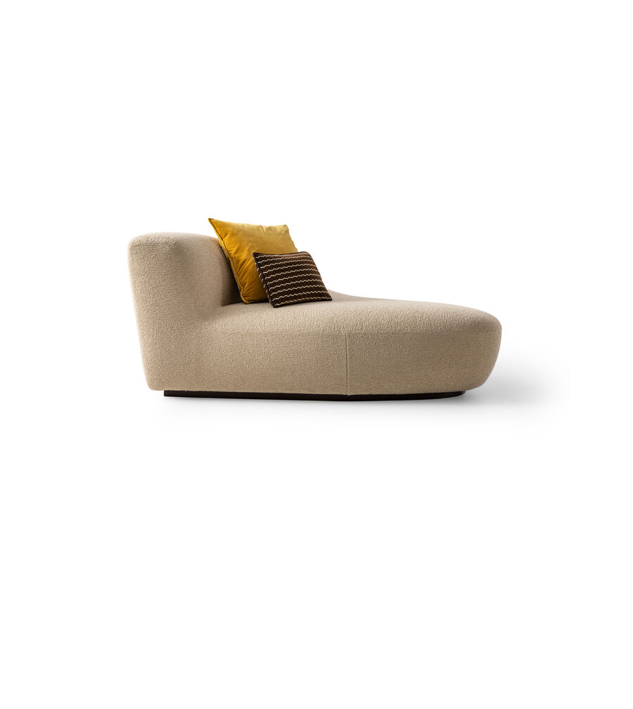 With its ample dimensions, fluid organic forms and vast assortment of different modules, the Sandia collection offers a flexible and stylish decor solution. Abundant soft padding accentuates the inviting and eye-pleasing aesthetic of the chaise longue created by designer Toan Nguyen. Available in a choice of fabric or leather upholstery for exceptional comfort, this is a sophisticated, contemporary addition to bedrooms and living zones.