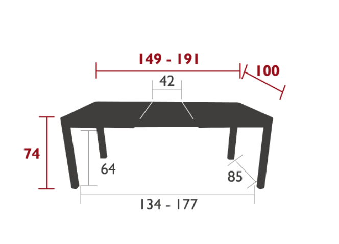 Avec ou sans son allonge, la table métallique Ribambelle peut accueillir 6 ou 8 convives sans aucun encombrement des pieds. Son système télescopique avec glissières à roulements est ultra pratique pour insérer l'allonge et offrir 2 places supplémentaires en un tour de main. Ultra pratique aussi le coffre de rangement dissimulé sous la table pour y stocker cette allonge.