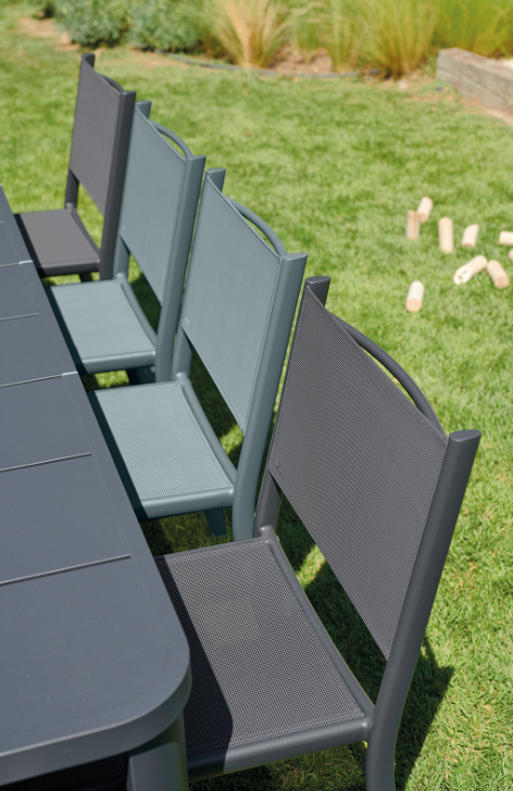 Alliance parfaite d’élégance et de confort ! La chaise Costa, qui associe une structure tubulaire en aluminium et une assise en Toile Technique d'Extérieur (TTE), se caractérise par son empilabilité et son extraordinaire légèreté : 2800 g seulement ! Des lignes qui savent nous séduire par leur aspect contemporain et une souplesse de toile particulièrement agréable qui conserve sa résistance.