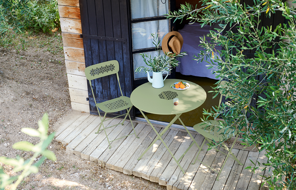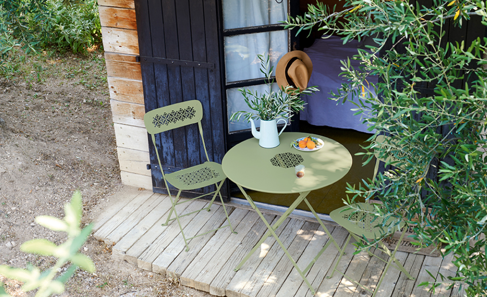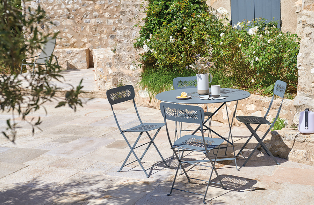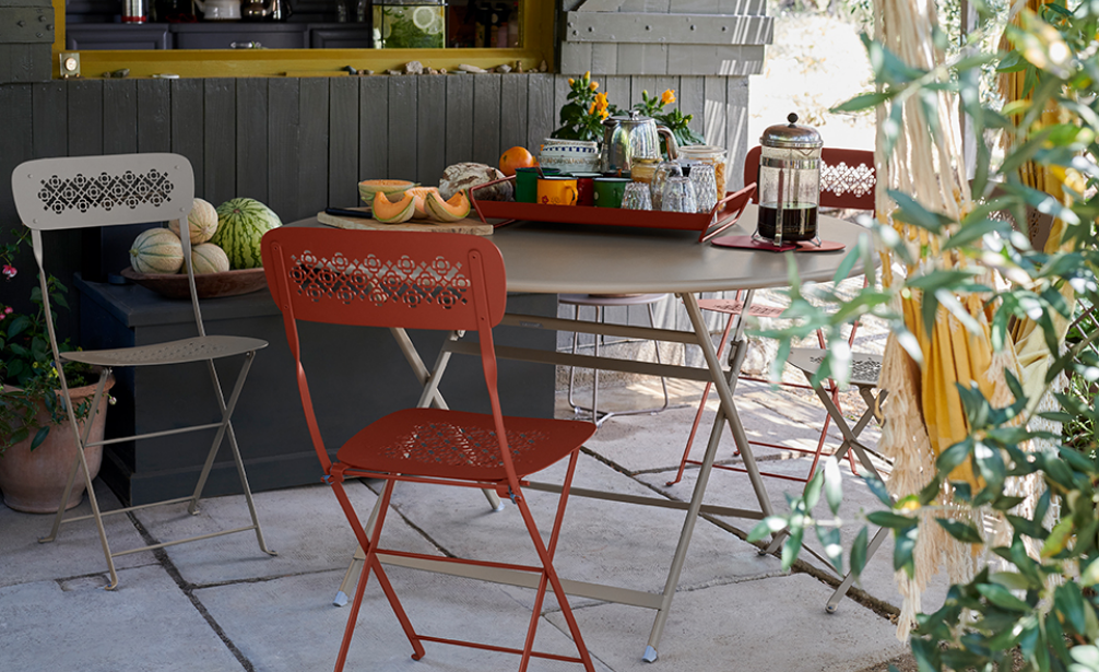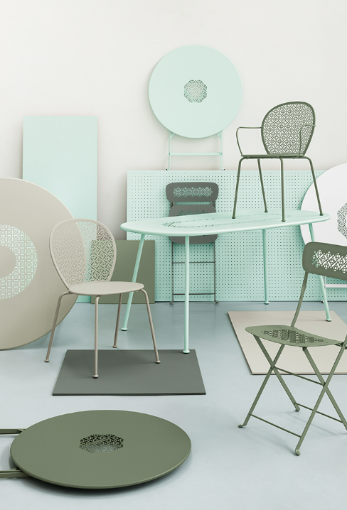 Nouvelle création de Frédéric Sofia, designer engagé dans une étroite collaboration avec Fermob et déjà créateur de la ligne Luxembourg : la coquette chaise pliante Lorette.