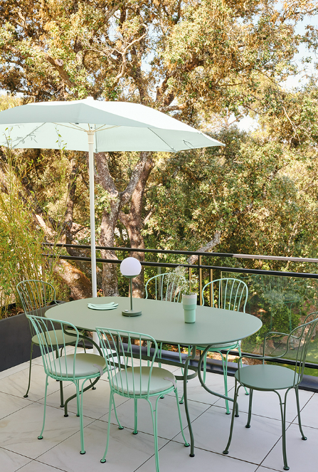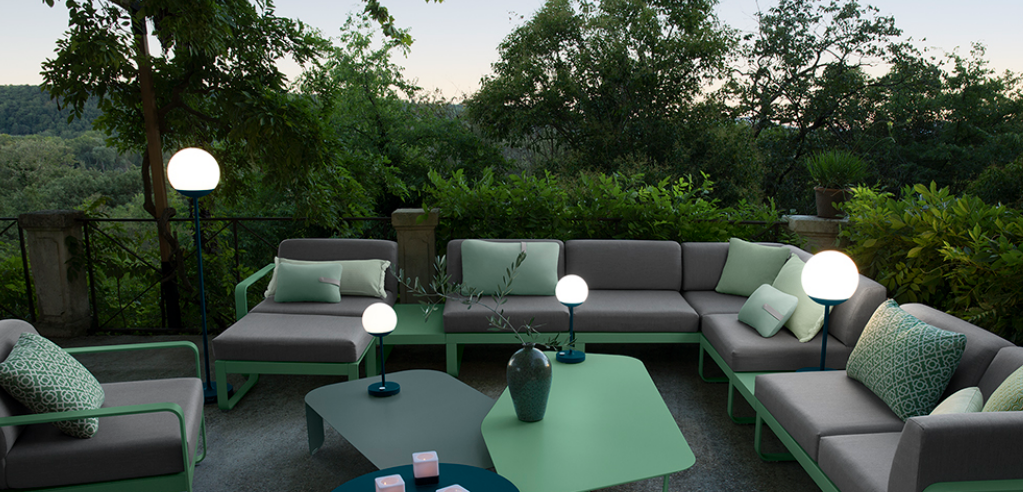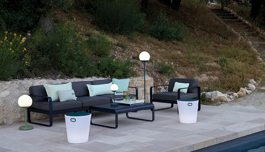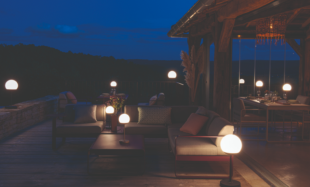 La collection de luminaires MOOON ! permet à Fermob de continuer à s'imposer comme leader sur le marché des lampes sans fil. La lampe H.41 Mooon! allie un design soigné aux lignes fluides à de riches fonctionnalité