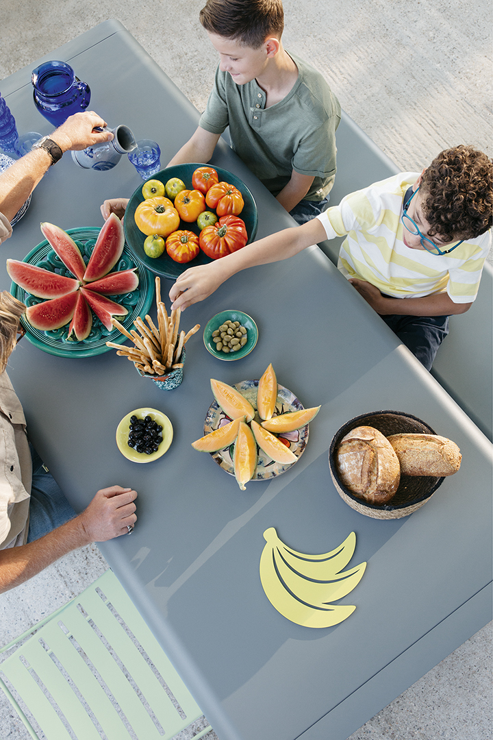 Le dessous de plat Banane complète la collection Envie d’Ailleurs. Il apporte une touche à la fois colorée et exotique à votre table extérieure et intérieure ! Fabriqué en France, composé d’acier et recouvert d’une peinture poudre sans solvant, 100% recyclée et recyclable, ce dessous de plat original résiste aux U.V. Idéal pour un usage 100% outdoor ! On aime ses couleurs issues du nuancier Fermob qui lui permettent de se mixer parfaitement avec le mobilier outdoor. A combiner selon les envies déco.