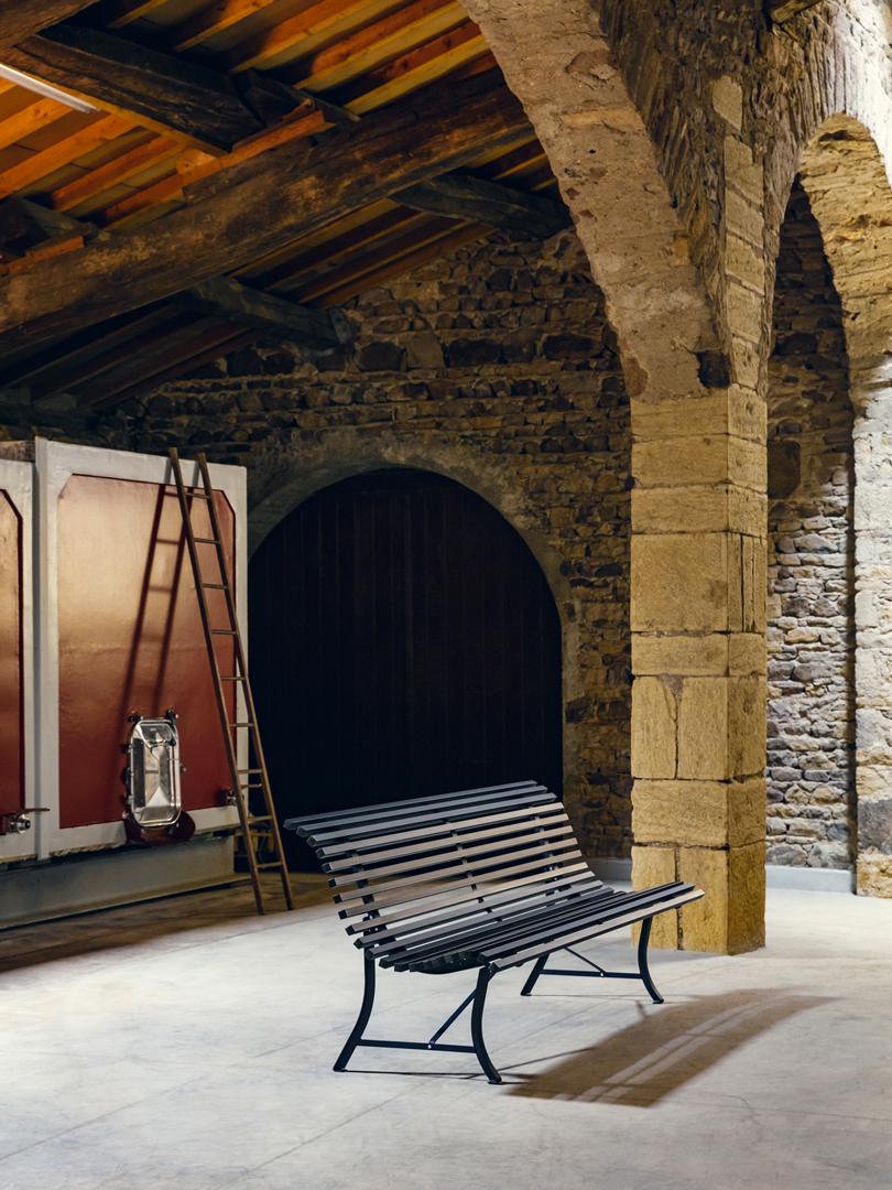 Avec ses lattes en acier, ce banc à la forme intemporelle trouvera sa place dans tous les aménagements extérieurs.