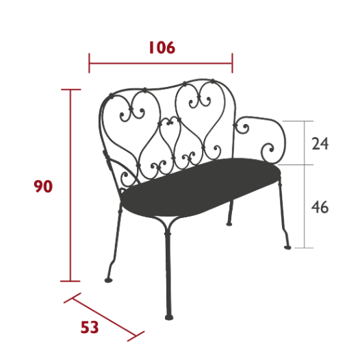Avec ses volutes forgées main et ses jolies perforations, la banquette 1900 invite à s’attarder, le temps d’un tête-à-tête amoureux ou d’une conversation entre amis. Moments intimes ou de convivialité assurés !