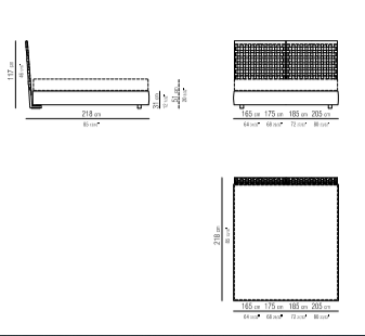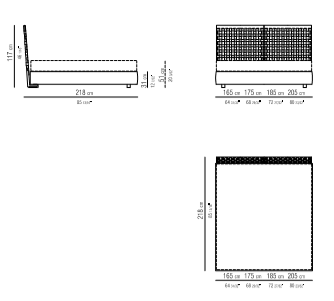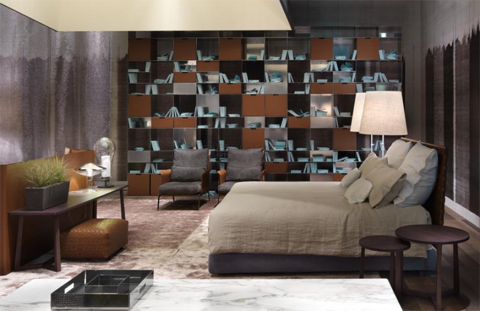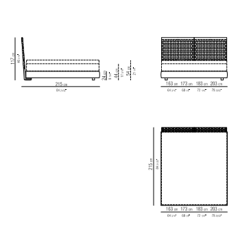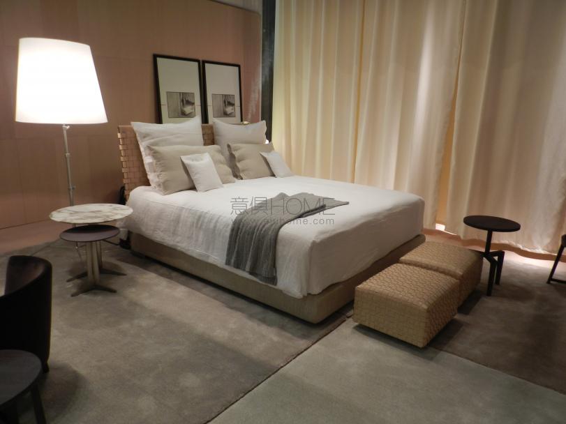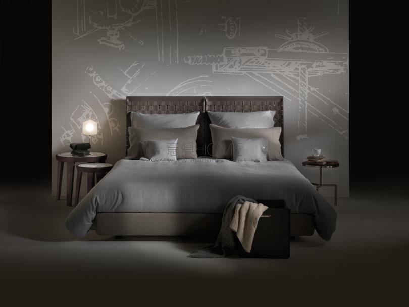 Cestone沙發(fā)所特有的設計與美學價值,也延伸至同名的床中。 床頭板由金屬框架構成,表面覆蓋著編織皮革。由此產生的“棋盤格”效果,具有強烈的視覺沖擊,與柔軟的填充床邊板形成賞心悅目的對比,后者可選用Flexform系列的所有織物或皮料作為面料。 Cestone床有不同尺寸供應,底座可選擇的款式包括:僅有床邊板、堅硬底座、高度可調節(jié)床板架底座與收納柜底座,收納柜可放置枕頭、被子與床品。