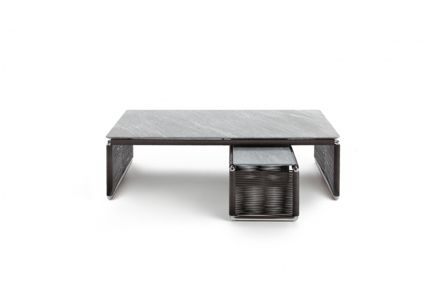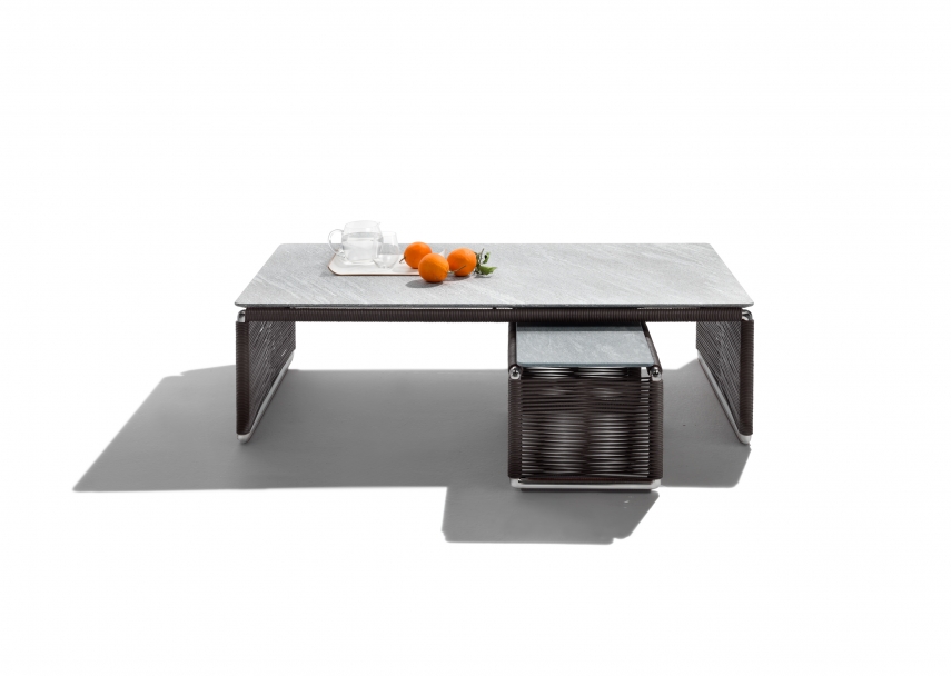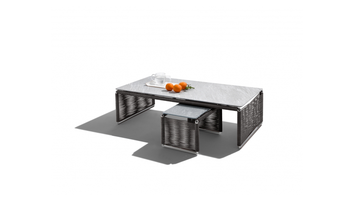 Tindari Outdoor茶幾完美詮釋了Flexform的一個(gè)珍貴主題,即編織。 茶幾的結(jié)構(gòu)采用擠壓鋁材,表面涂層為環(huán)氧粉末噴漆。整個(gè)結(jié)構(gòu)都包裹在輕盈結(jié)實(shí)的聚丙烯纖維或聚氨酯橡膠編織里,色彩包括天然色調(diào)、波爾多色和橄欖綠色。 巧手工匠的手工編織,為冷峻的金屬帶來(lái)溫度,帶來(lái)了一件個(gè)性鮮明的家具,可輕松搭配Flexform戶外系列的所有座椅,為露臺(tái)和陽(yáng)光房的布置增添優(yōu)雅格調(diào)。 Tindari茶幾也有石材臺(tái)面的版本,可選銀色Beola石,火山石,斑巖或卡多灰沙石。