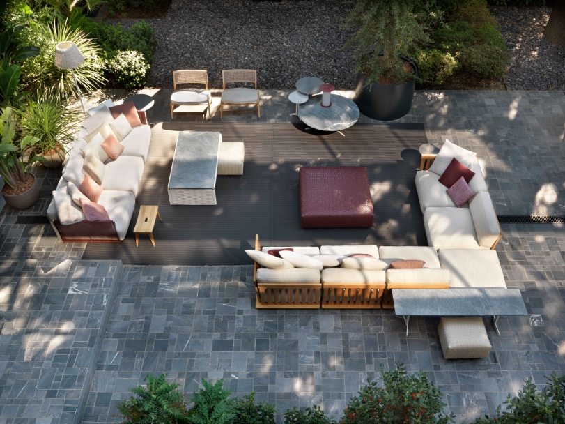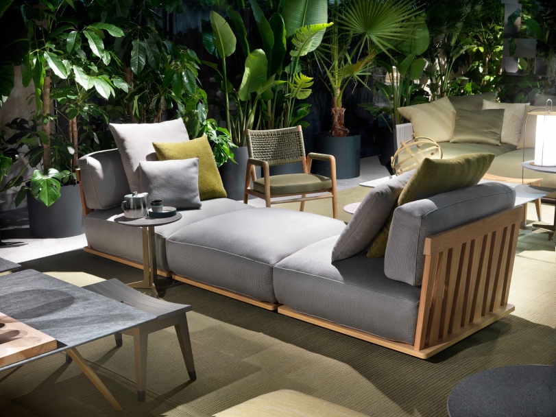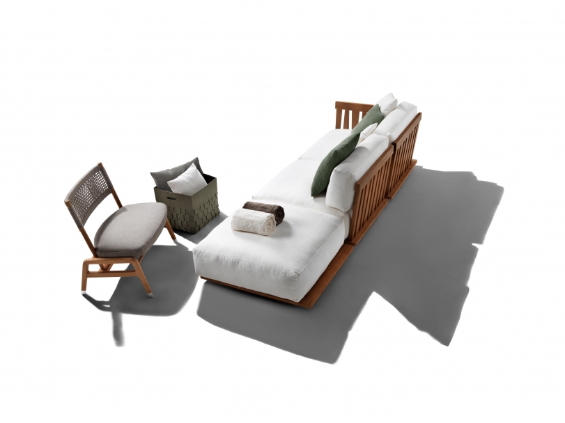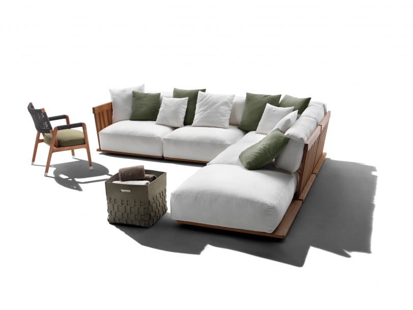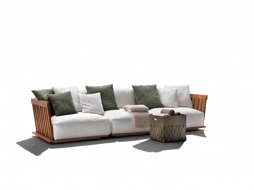 Zante是一套專為戶外環境設計的座椅系列,提供兩種深度,在組合方面具有極佳的靈活性。它用途廣泛,不同元件的拆卸非常簡易,在季末或有需要時,可以疊加收藏于隱蔽之處。 大綠柄桑木對天氣因素具有高度的防御能力,其與生俱來的美感與品質,啟發了這個戶外座椅系列的構思,一如Flexform的優秀傳統,結合了低調優雅與高度舒適,用以裝飾露臺與陽光房,可與室內環境保持絕對的一致。 Zante沙發的底座完全采用Okumè木航海復合板制作,帶有透氣孔,讓椅墊獲得良好通風。上部的大綠柄桑木鑲板,搭配完全以大綠柄桑實木芯材制作的扶手與靠背結構,獨有不規則條紋和手工鑲嵌。沙發下方是一個316奧氏體鋼框架,由 尼龍支腳托離地面。隨著時間推移,大綠柄桑木會變得“滄桑”,逐漸變成特別的灰色。正是這種精致色調,啟發了Flexform大綠柄桑木的表面處理工藝,除了灰色外,還提供天然和白漆的版本。 Zante是一款休息而包容的沙發:坐墊與椅墊都帶有豐厚的填充料。為了確保最佳的戶外表現,所有填料都覆蓋了特別的防水透氣椅套,豐富的面料選擇可保證出色的抵御能力,不僅可應對天氣因素和紫外線,還可耐受氯和鹽的侵蝕。強烈建議使用專門的防水椅套,保持Zante沙發的良好狀態,盡量維持原狀。