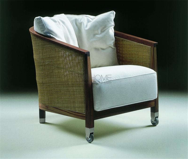 Mozart是一款優(yōu)雅的室內(nèi)扶手椅,自帶戶外風情,隱約散發(fā)著殖民地時代的記憶。優(yōu)雅結(jié)實的金屬與木材結(jié)構(gòu),可選用多種色彩的卡納萊托胡桃木或歐洲白蠟?zāi)荆e出心裁地使用了編織燈芯草,賦予了不同尋常的優(yōu)雅。豐厚的填料保證了舒適感:坐墊采用聚氨酯與滌綸填料,靠墊則以滌綸和鵝絨填充。Mozart扶手椅配有實用的前輪,可輕易移動。