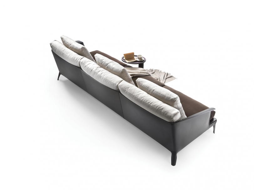 這款沙發的設計,取決于皮革這款高貴百搭的面料的內在表現力。 Isabel沙發內涵豐富,做工精細,線條簡潔洗練??勘秤梢粋€包圍身體的金屬外殼構成,表面完全覆蓋皮革,構成扶手的延伸,扶手兩端略向外打開,在皮革表面形成輕微的皺褶,令人聯想起日本的折紙藝術。 Isabel沙發的特點是甜美優雅,由皮革搭配織物或真皮,可選擇同色或裝色對比,展現更鮮明的個性。