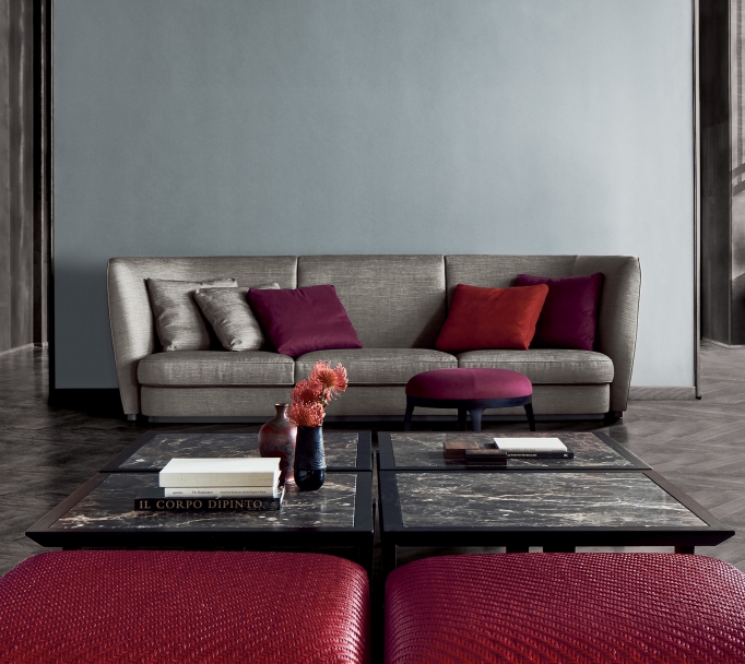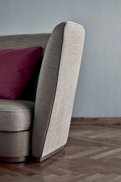 這款沙發體型龐大,引人矚目,注定會在任何環境中扮演主角,無論是家居或是公共接待空間,例如大堂或休閑吧。沙發結構為木制,內有大量的延展性聚氨酯和滌綸填充物,表面覆蓋著雙層保護織物。靠背高聳,線條環繞身體,顯得莊重高大,容納著多個坐墊,凸顯了Altea沙發的裝飾性特點。覆蓋面料邊緣帶有一道羅緞鑲邊,可采用同色或撞色對比。