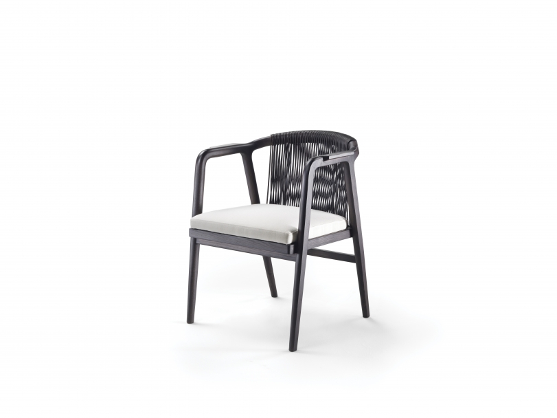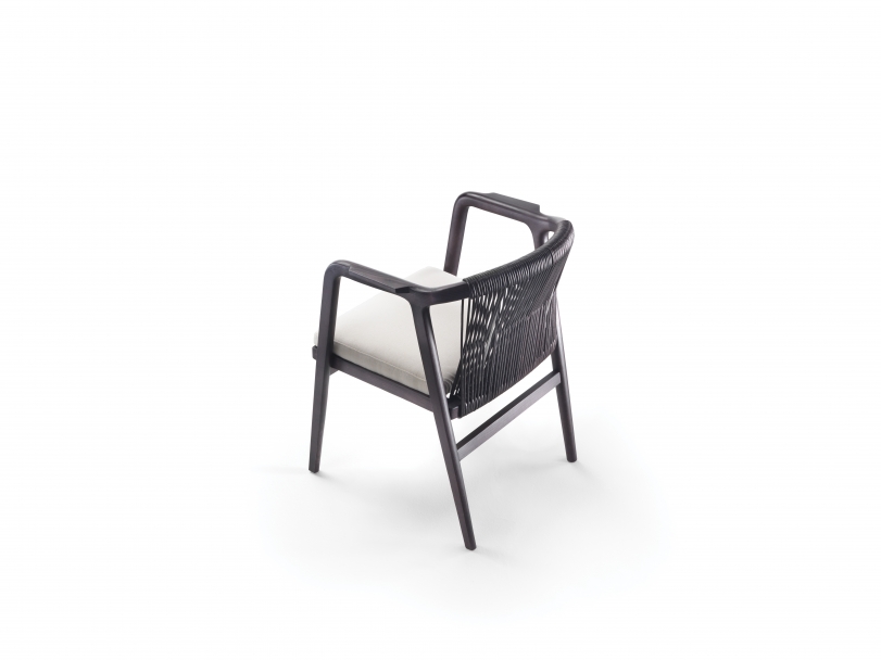 Crono小扶手椅與同名扶手椅采取同樣線條,呈現出緊湊而優美的線條。實木框架采用的是卡納萊托胡桃木或歐洲白蠟木,有多種顏色可選,加工工藝清晰展現了品牌傳承意大利木工傳統的態度。 靠背展現出獨特考究的加工,以皮革繩索純手工編織而成,座椅具有延展性聚氨酯填充料,表面覆蓋雙層織物,外層椅套為織物或真皮,可拆卸。