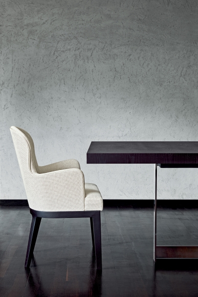 以現(xiàn)代手法演繹復(fù)古風(fēng)味,成就了You午餐椅和小扶手椅。扶手椅靠背線條優(yōu)雅,向下延伸形成扶手。You椅子做工考究,椅套帶有羅緞鑲邊,可采用同色或撞色對(duì)比。 You椅子有兩個(gè)款式:一款風(fēng)格更傳統(tǒng),帶有歐洲白蠟?zāi)疽瓮龋善岢刹煌伾硪豢铒L(fēng)格更具當(dāng)代感,具有簡(jiǎn)潔的金屬底座,表面處理有磨砂、鍍鉻、黑鉻、磨光、鍍銅或香檳色可選。