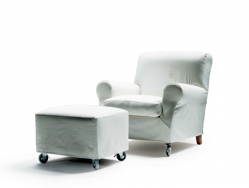 Nonnamaria扶手椅,如同所有的家族沙發系列一樣,汲取了古典沙發的造型,以當代手法重新演繹。 它呈現出親切舒服的外觀,既從屬于集體記憶,又擺脫了無用而繁重的裝飾細節。椅套是簡約的易拆卸面料,為Nonnamaria扶手椅平添清新輕盈的魅力。 Nonnamaria扶手椅的靠背后配有實用的把手,前方有自剎車輪子,方便移動。可搭配同名沙發凳,后者同樣配有輪子。