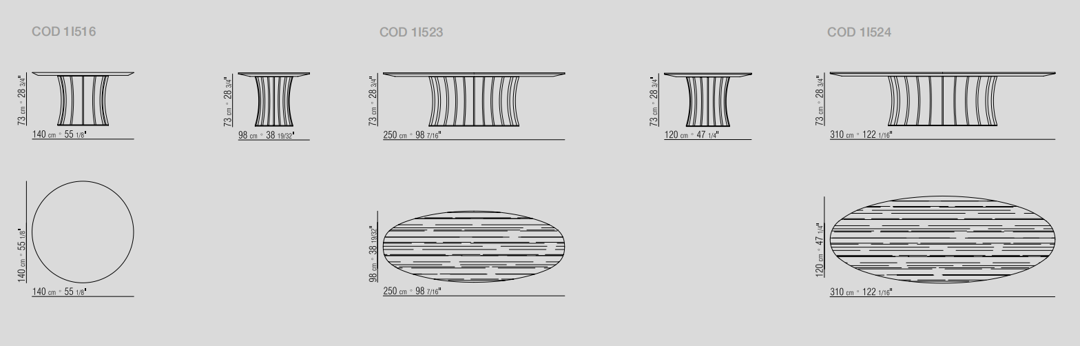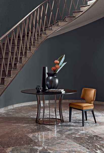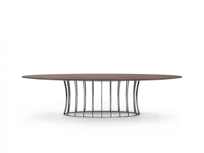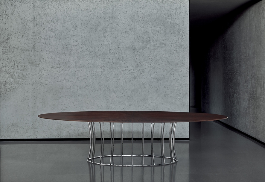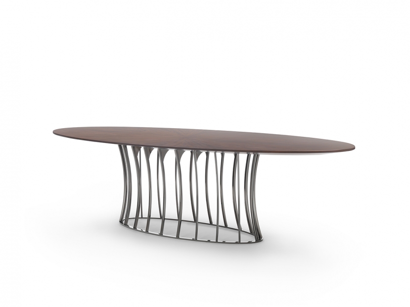 Arthur系列包括桌子與茶幾,空靈的金屬底座設(shè)計(jì)考究,承托起圓形或橢圓形的臺(tái)面。 造型性感,表面處理工藝豐富多樣,Arthur桌子展現(xiàn)出令人眼前一亮的個(gè)性特點(diǎn),金屬底座與臺(tái)面可呈現(xiàn)不同的組合,底座表面處理工藝有磨砂、鍍鉻、黑鉻、磨光、鍍銅和香檳色,而桌面則有多種精致顏色的天然橡木款或名貴大理石款。