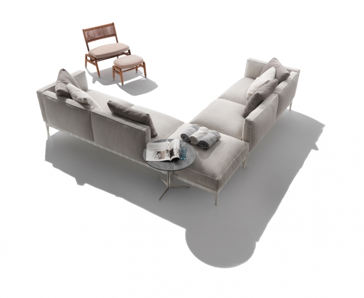 Atlante沙發(fā)采用現(xiàn)代風(fēng)格。軟墊坐墊的大尺寸抵消了金屬結(jié)構(gòu)的緊縮感,優(yōu)雅的羅緞滾邊勾勒出其柔和而溫馨的形狀。