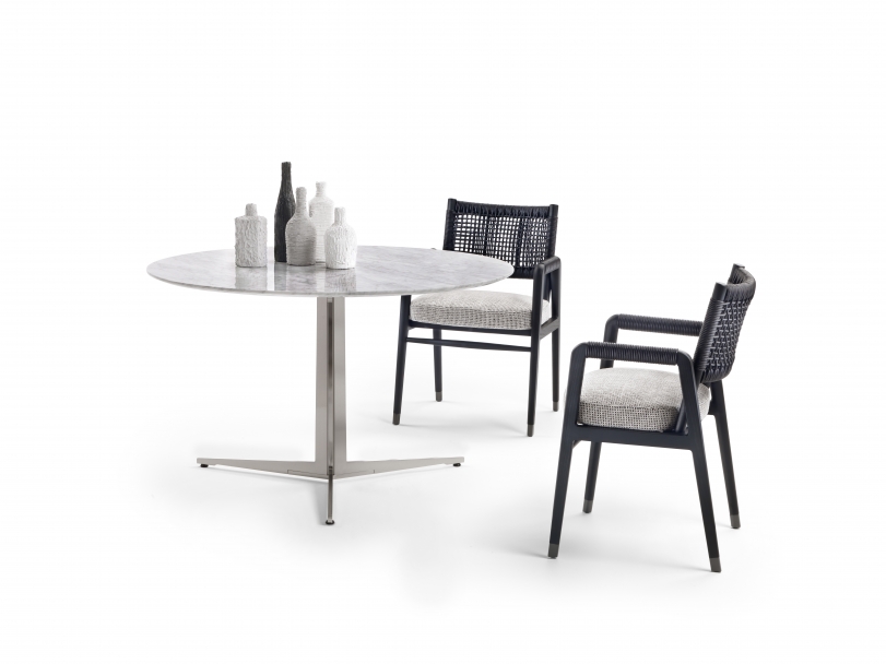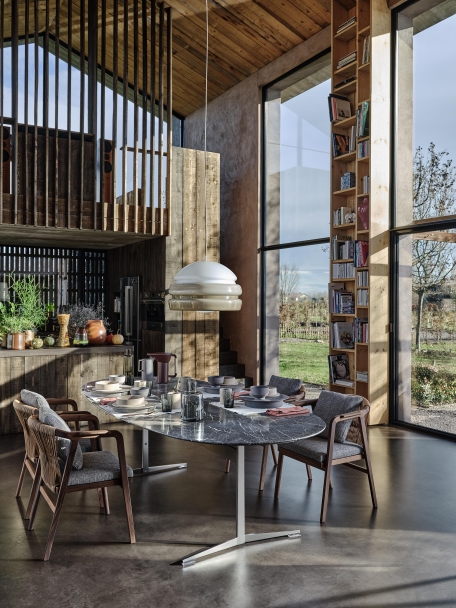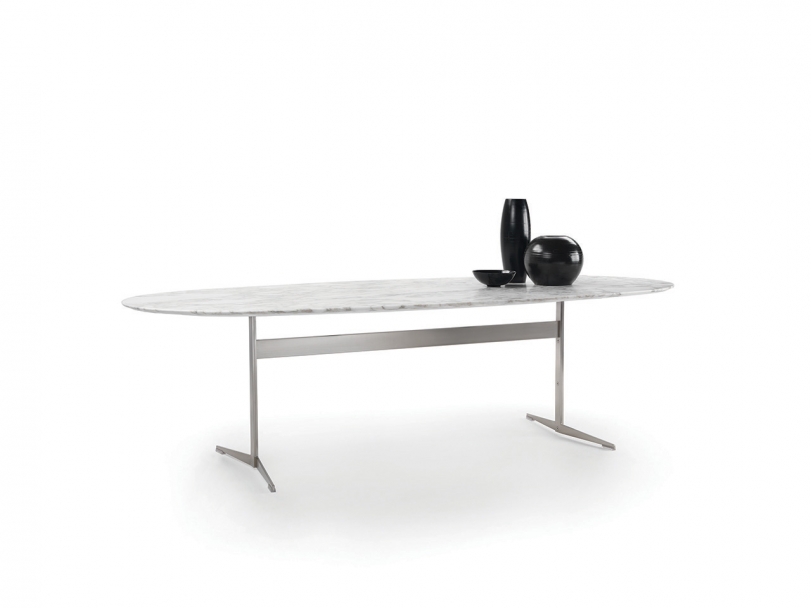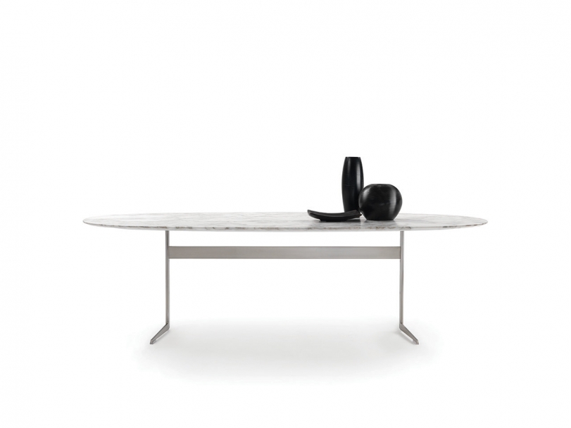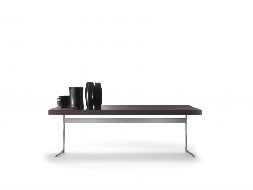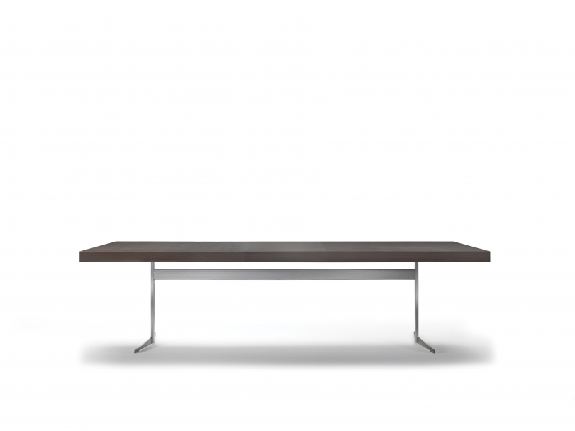 An extensive family of extremely versatile tables, coffee tables, side tables and cabinets, Fly is a genuine expression of the kind of “good design” upon which the entire Flexform collection is built. Purity of design, along with true practicality and the variety of finishes and sizes available, imbue the Fly table with amazing versatility. The table’s metal base comes in satin, chrome, burnished, black chrome or champagne finish, while the top – available in round, oval or rectangular shape, and in a number of sizes – comes in Canaletto walnut or ash, stained in an array of shades, or in marble. An extendable version of the rectangular table is also available.