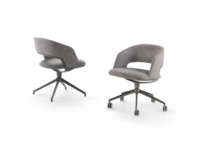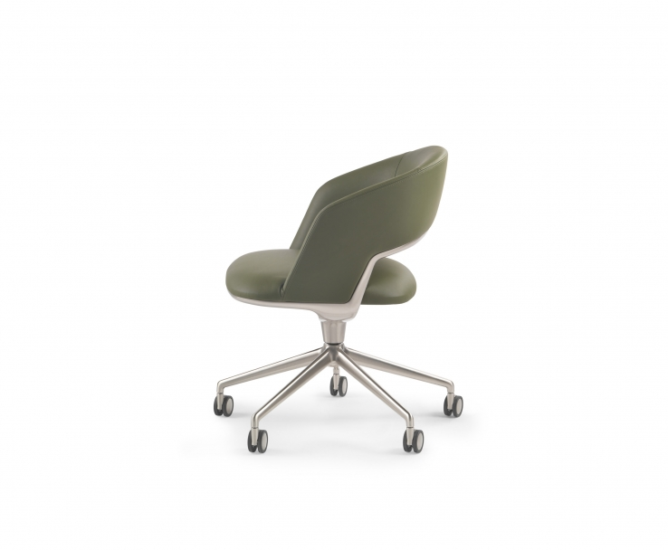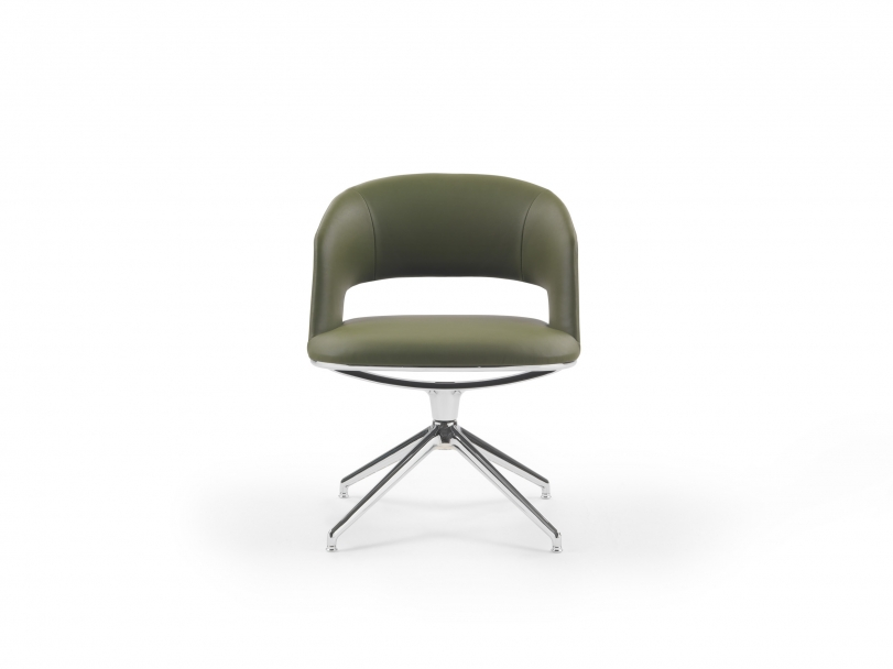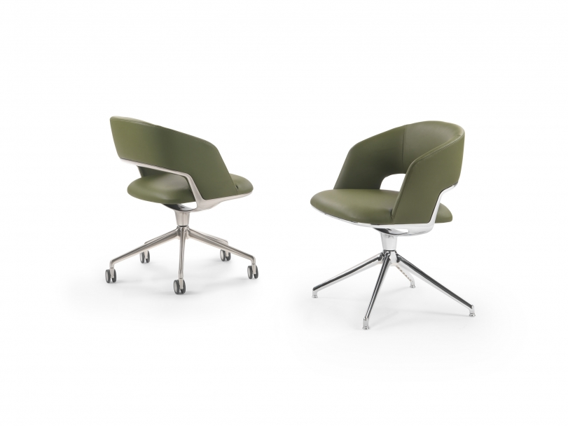 Sleek and graceful, thanks to the aluminum swivel base, the Alma small armchair meets the increasingly widespread demand for a home office space, yet is equally at home in the workplace ? in executive offices, meeting rooms or luxurious conference rooms.