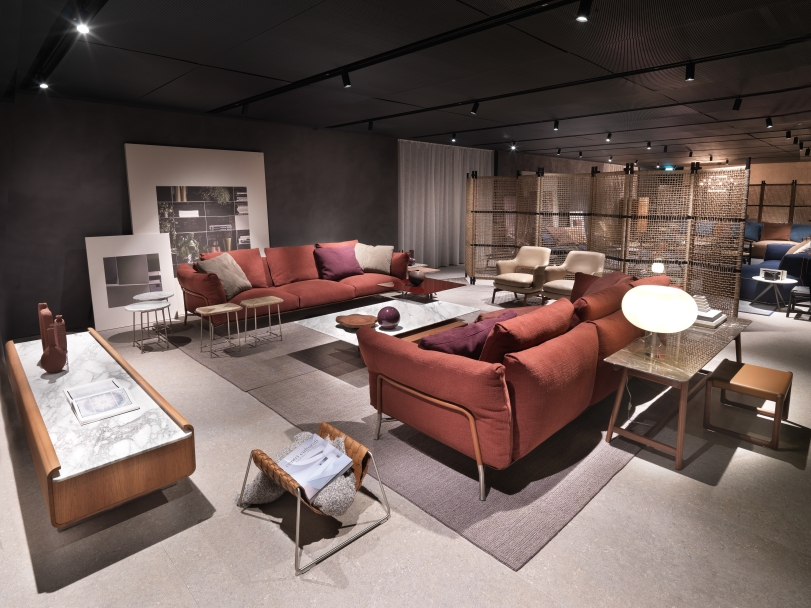 The Ambroeus sofa is available in two- and three-seat stand-alone versions and in a series of differently arranged configurations.